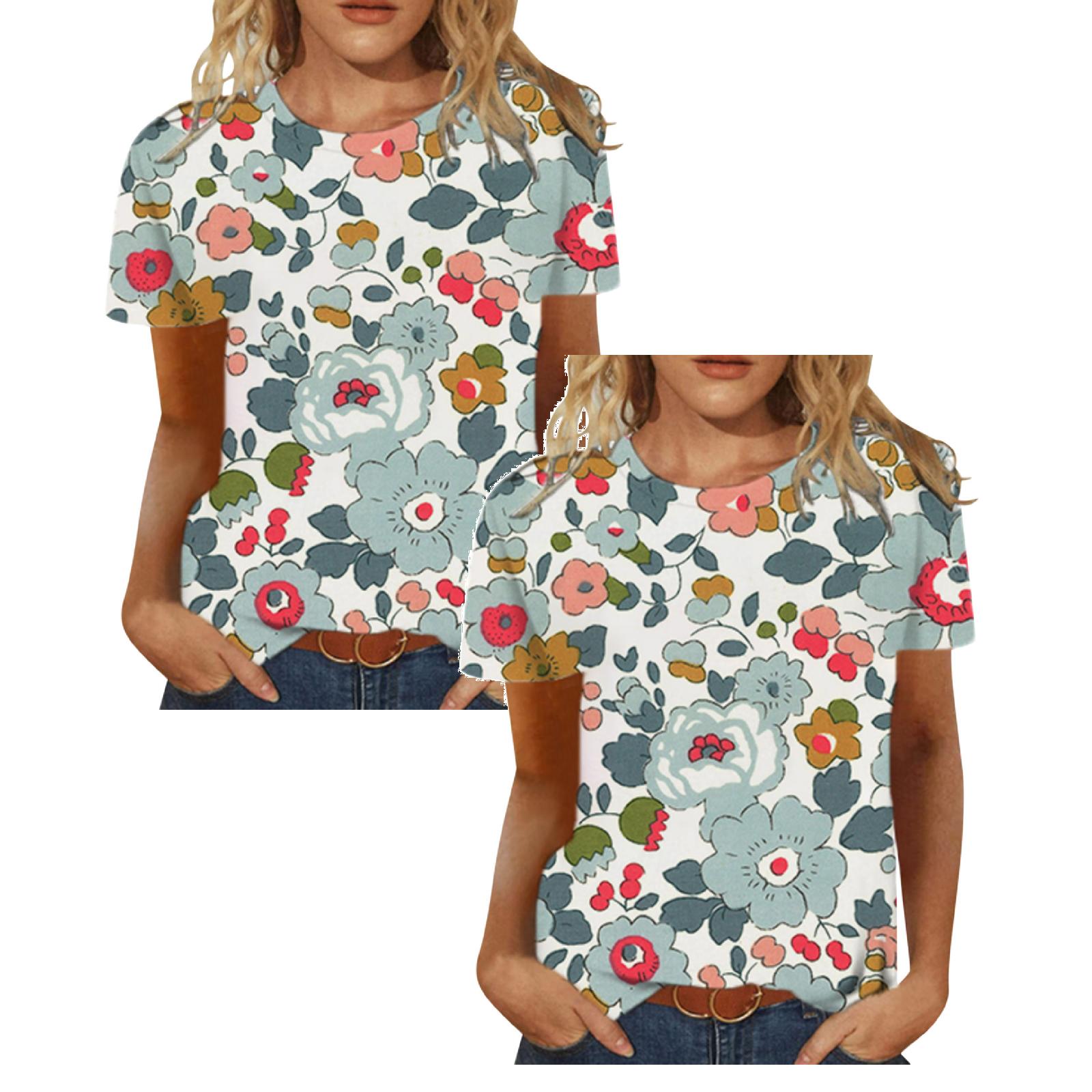 Moonker Womens Summer Tops Style Pattern Printed V Neck T Shirt Western Style Short Sleeve Printed Tunic For Women Women S Western Ethnic 2pcs Walmart Com