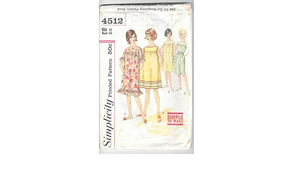 Amazon Com Vintage Simplicity 4512 Sewing Pattern Muu Muu Or Beach Dress Sewing Pattern Arts Crafts Sewing